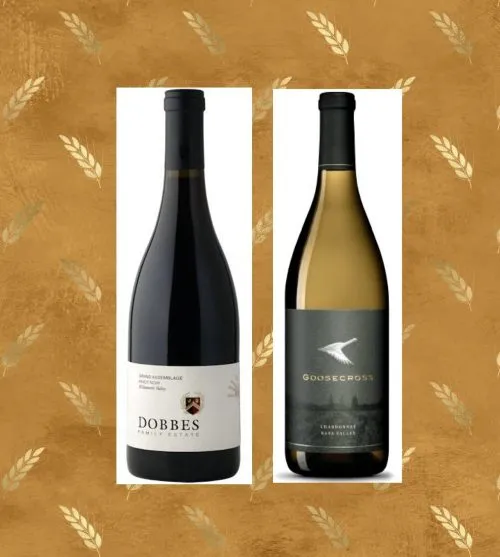 Dobbes Grand Assemblage Pinot Noir 2021 is the perfect pairing for earthy stuffing, mashed potatoes, cranberry sauce, and roasted vegetables. It draws long on the palate with mouthwatering acidity, and a light but discernible structure. Delicate and fresh, it displays flavors of raspberry, orange pith, blackberry, and dark chocolate. Chardonnay is a classic selection for the Thanksgiving table. Goosecross Napa Chardonnay 2022 is clean, balanced, and with rich flavor. It pairs splendidly well with creamy mac and cheese and roasted cauliflower.